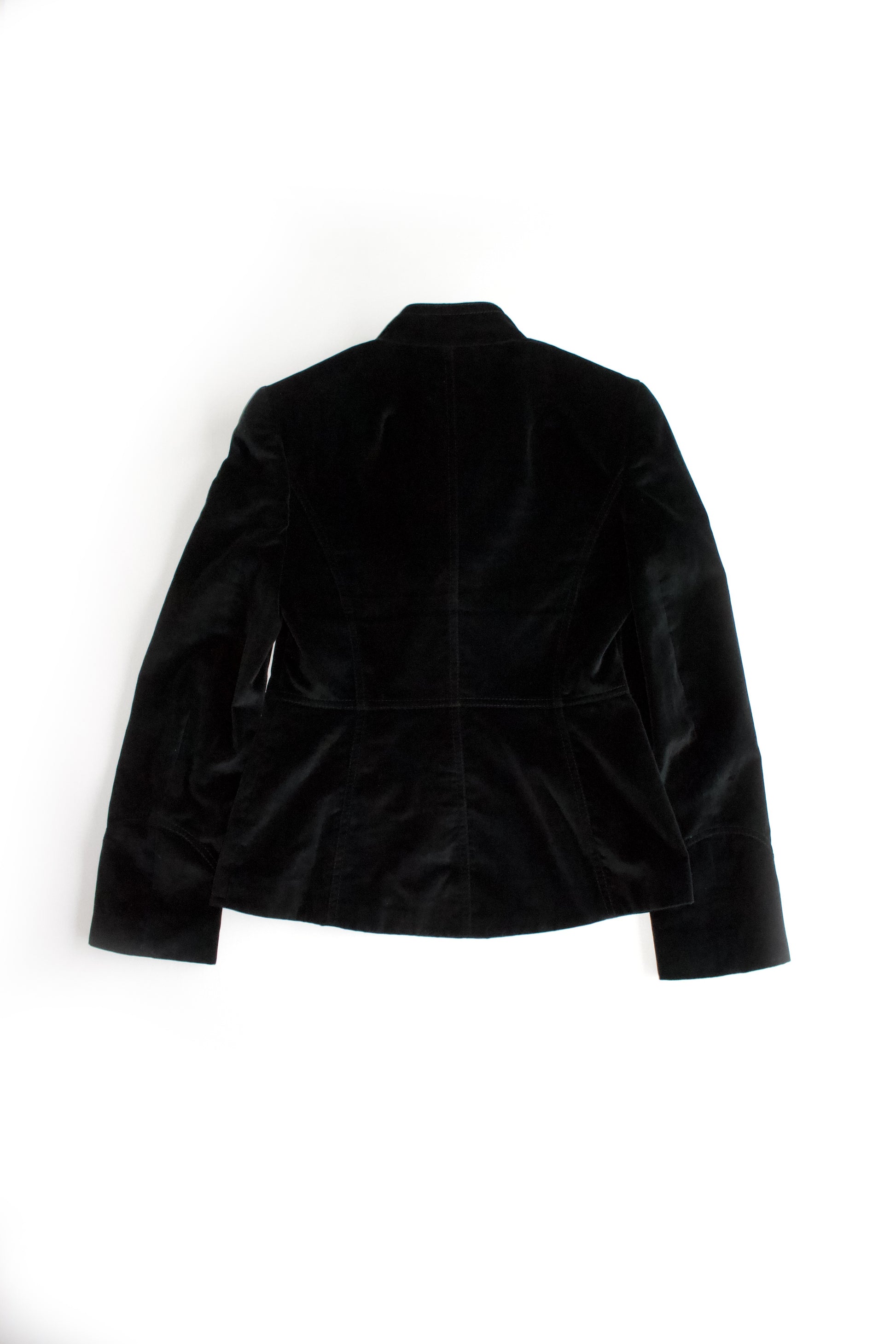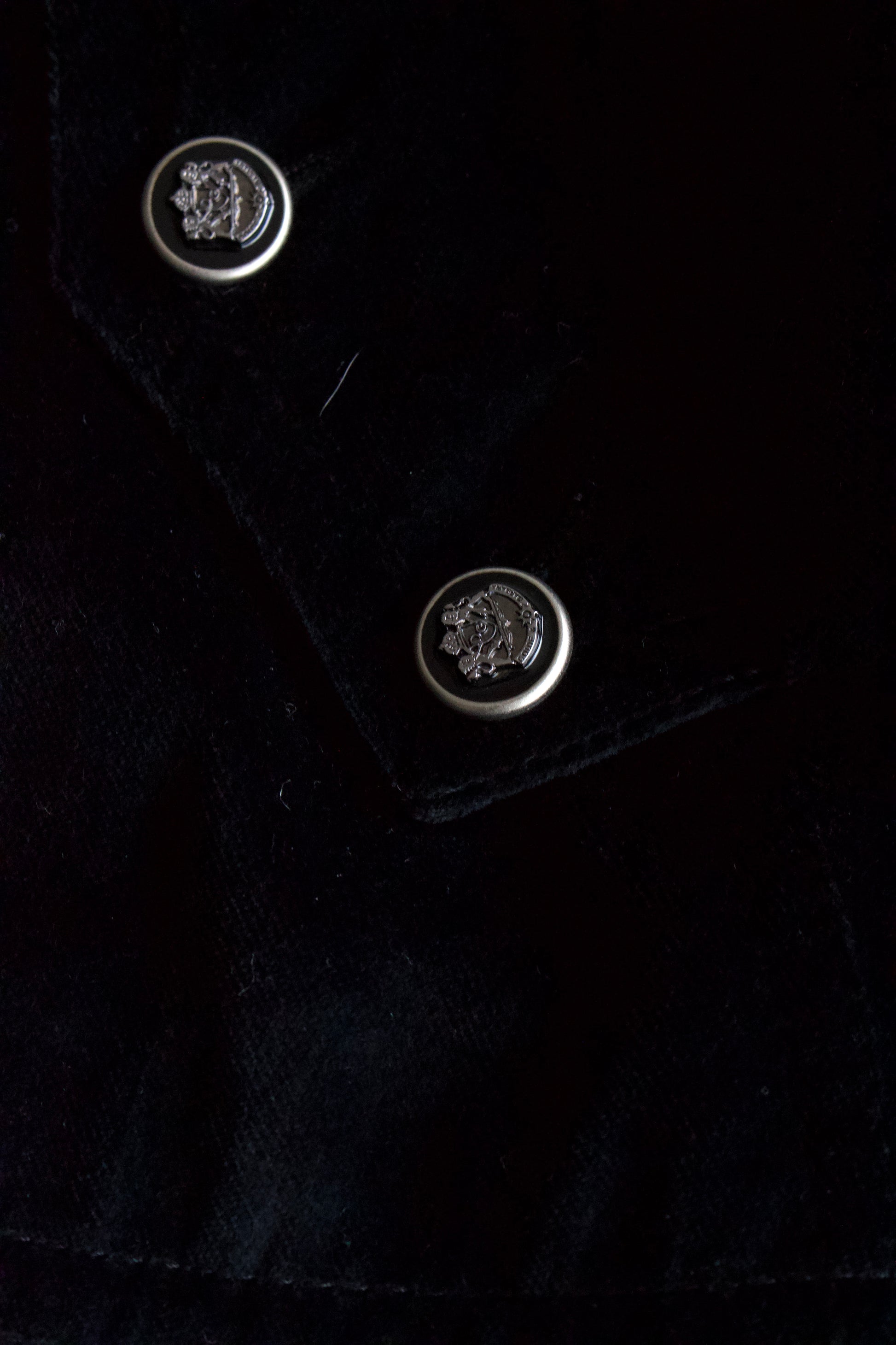Soft black velvet with silver-toned buttons.