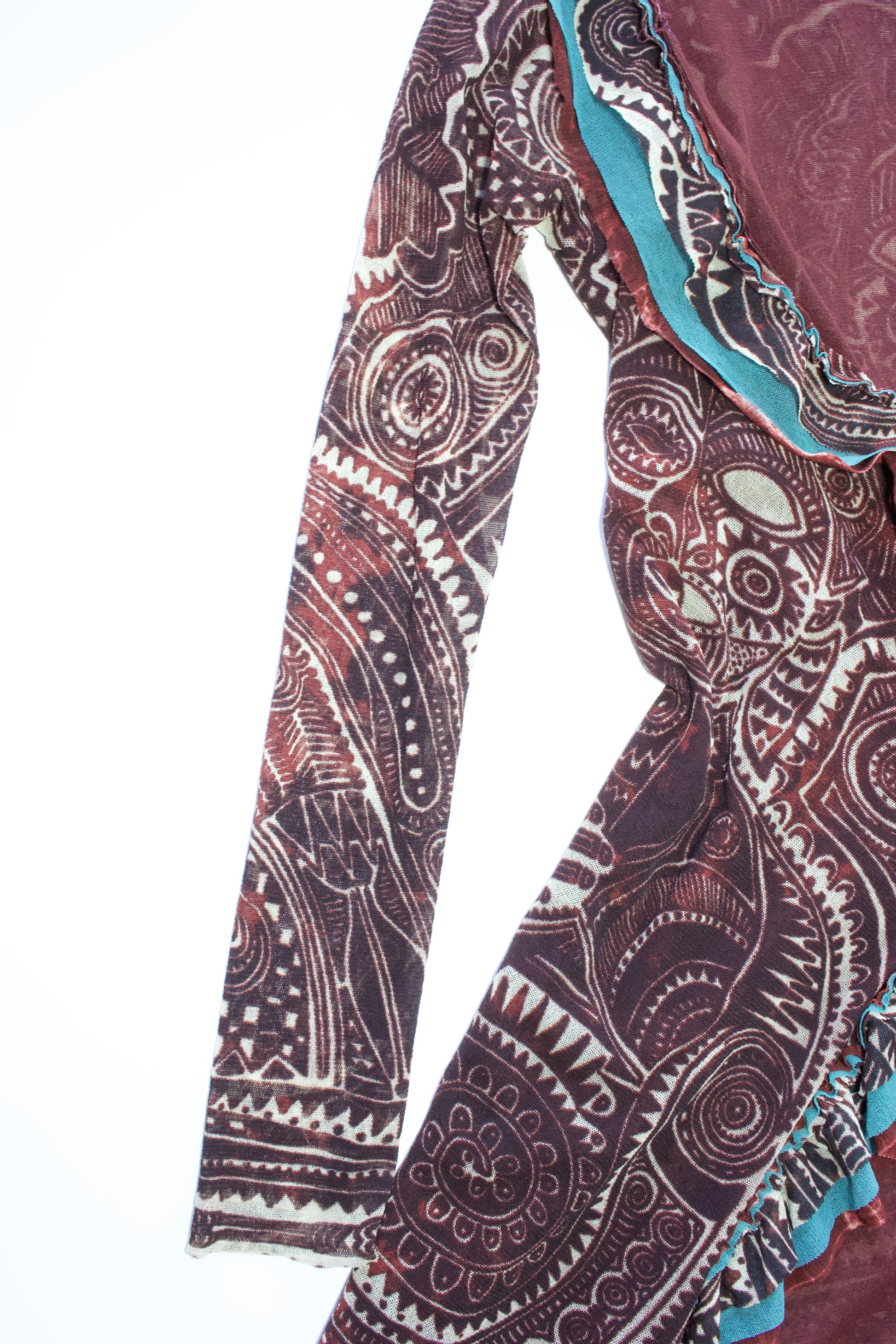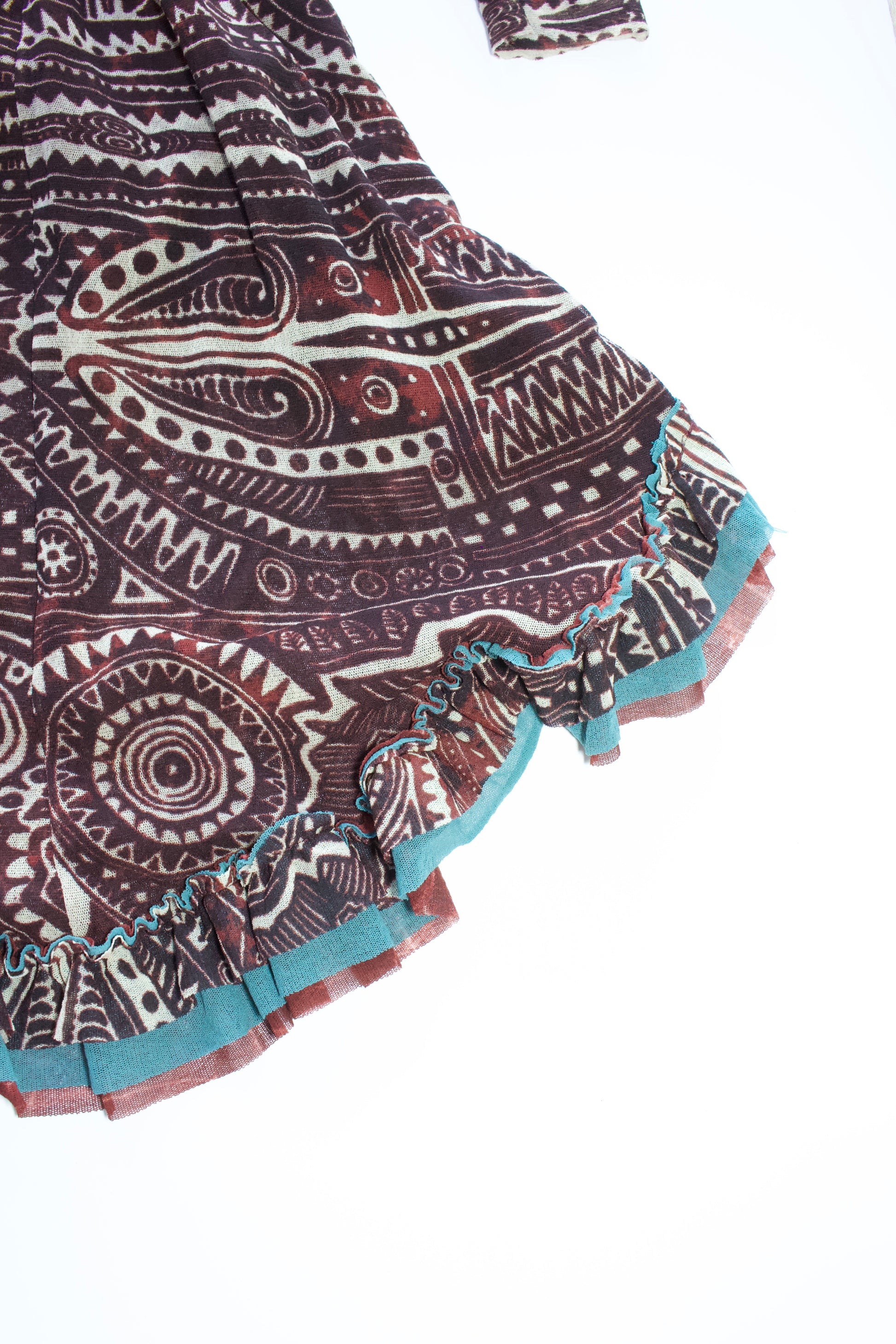 Jean Paul Gaultier brick-red and blue robe with ruffles