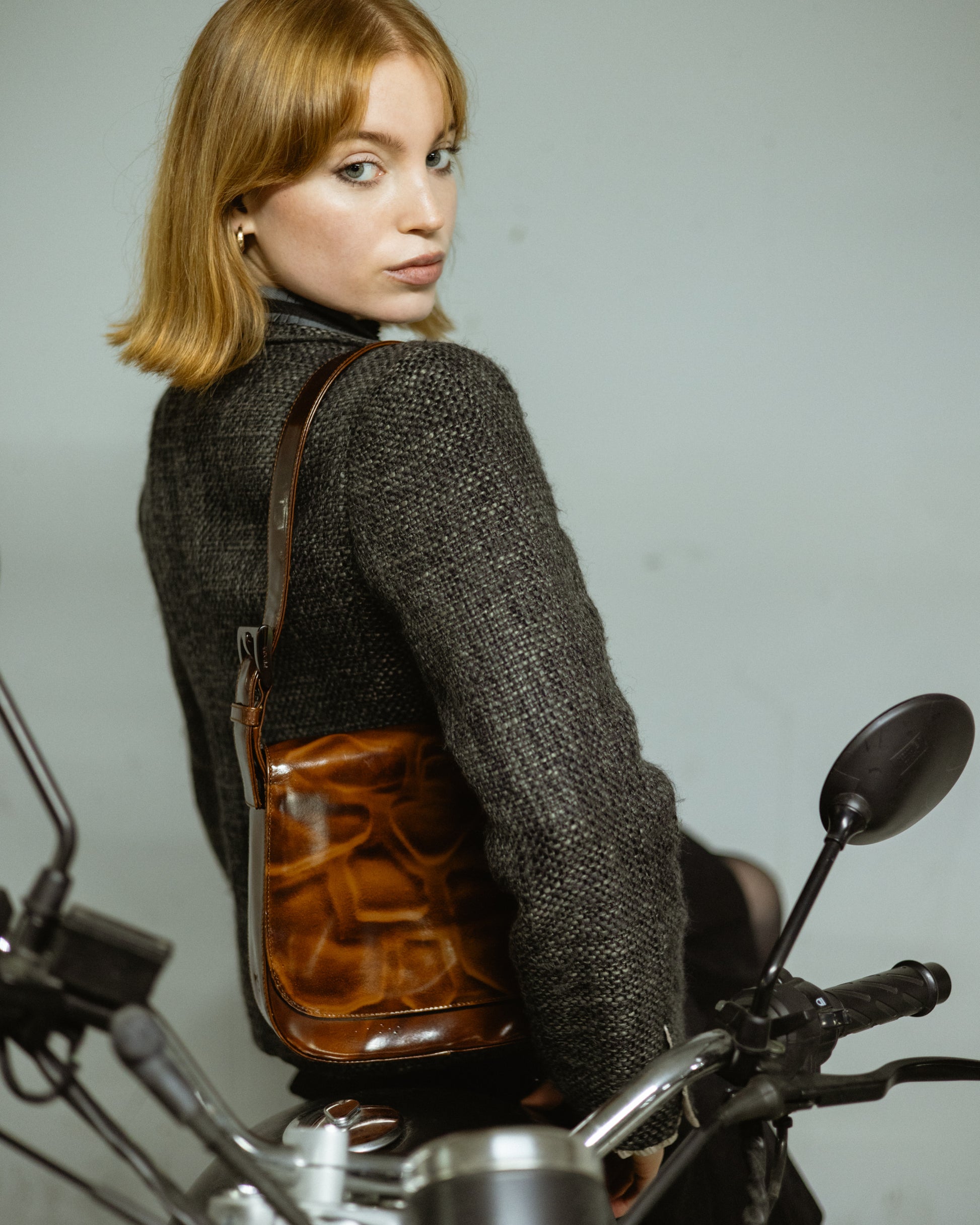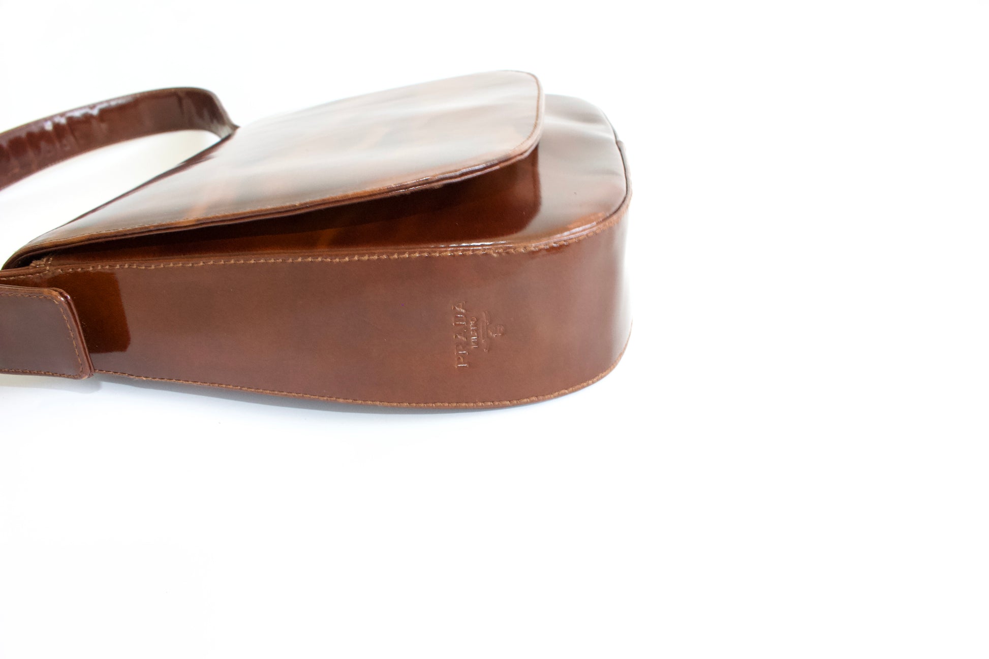 Prada Cleo brown patent leather Stampa Giraffa shoulder bag