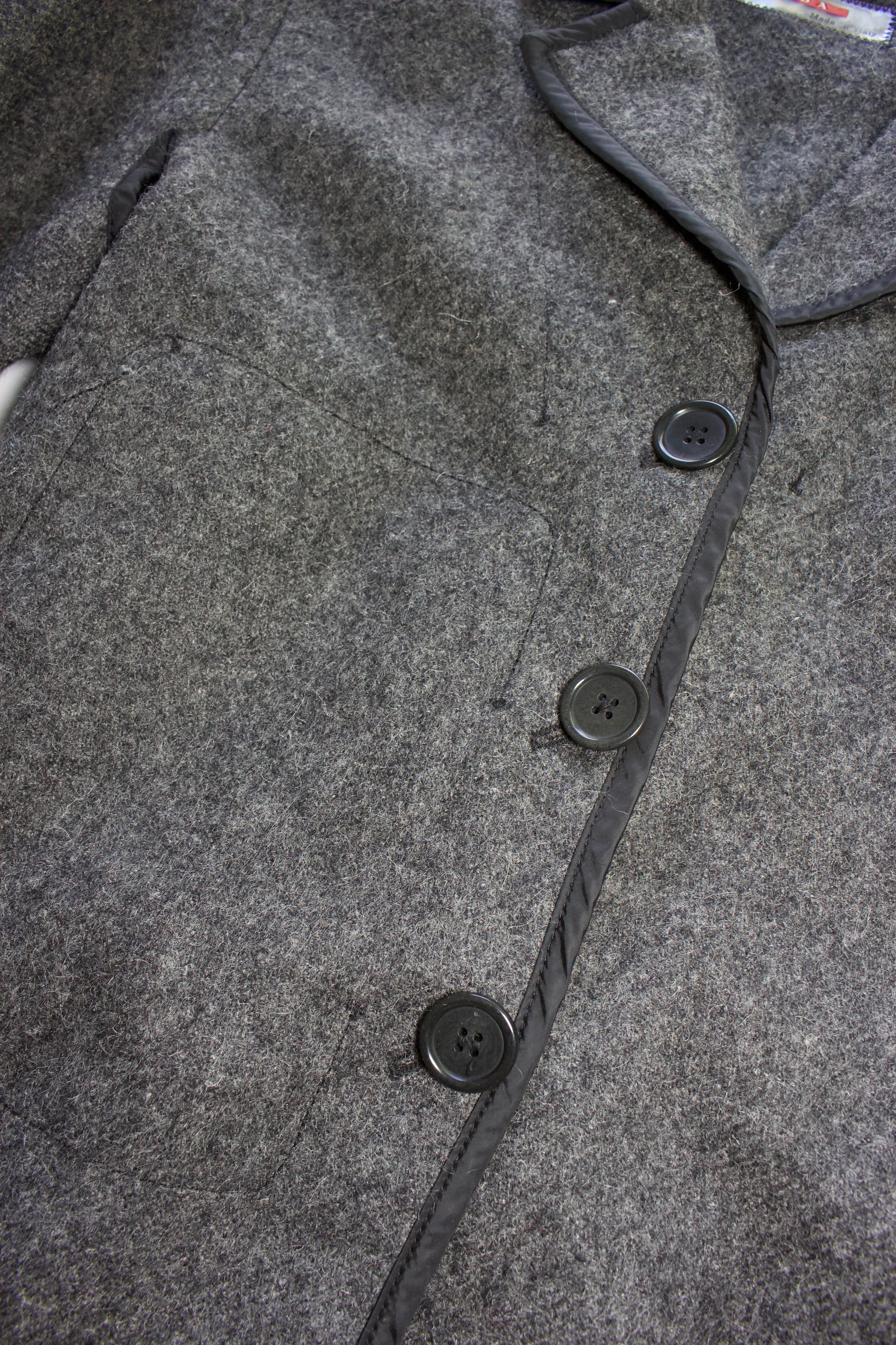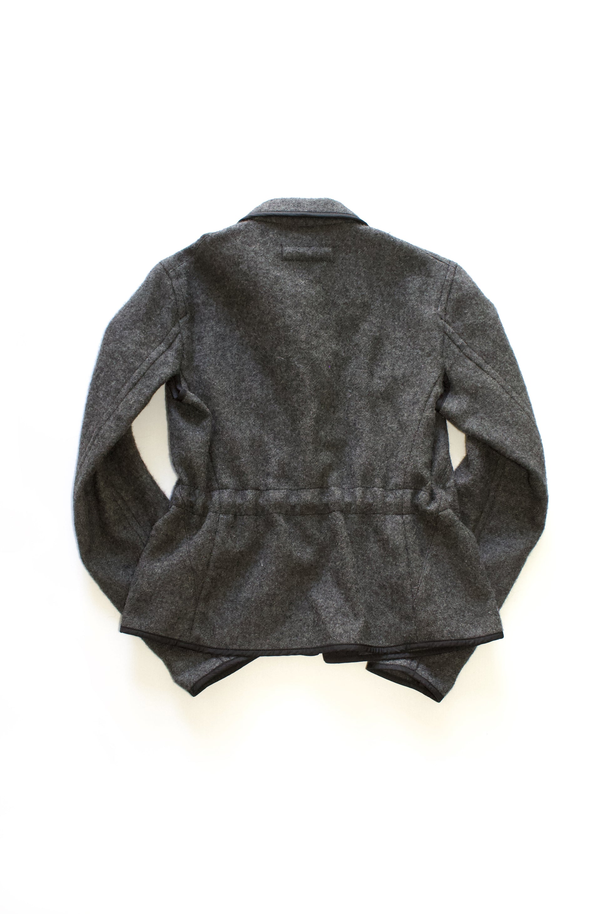 Unlined coarse wool with armpit cutouts. Black nylon piping.