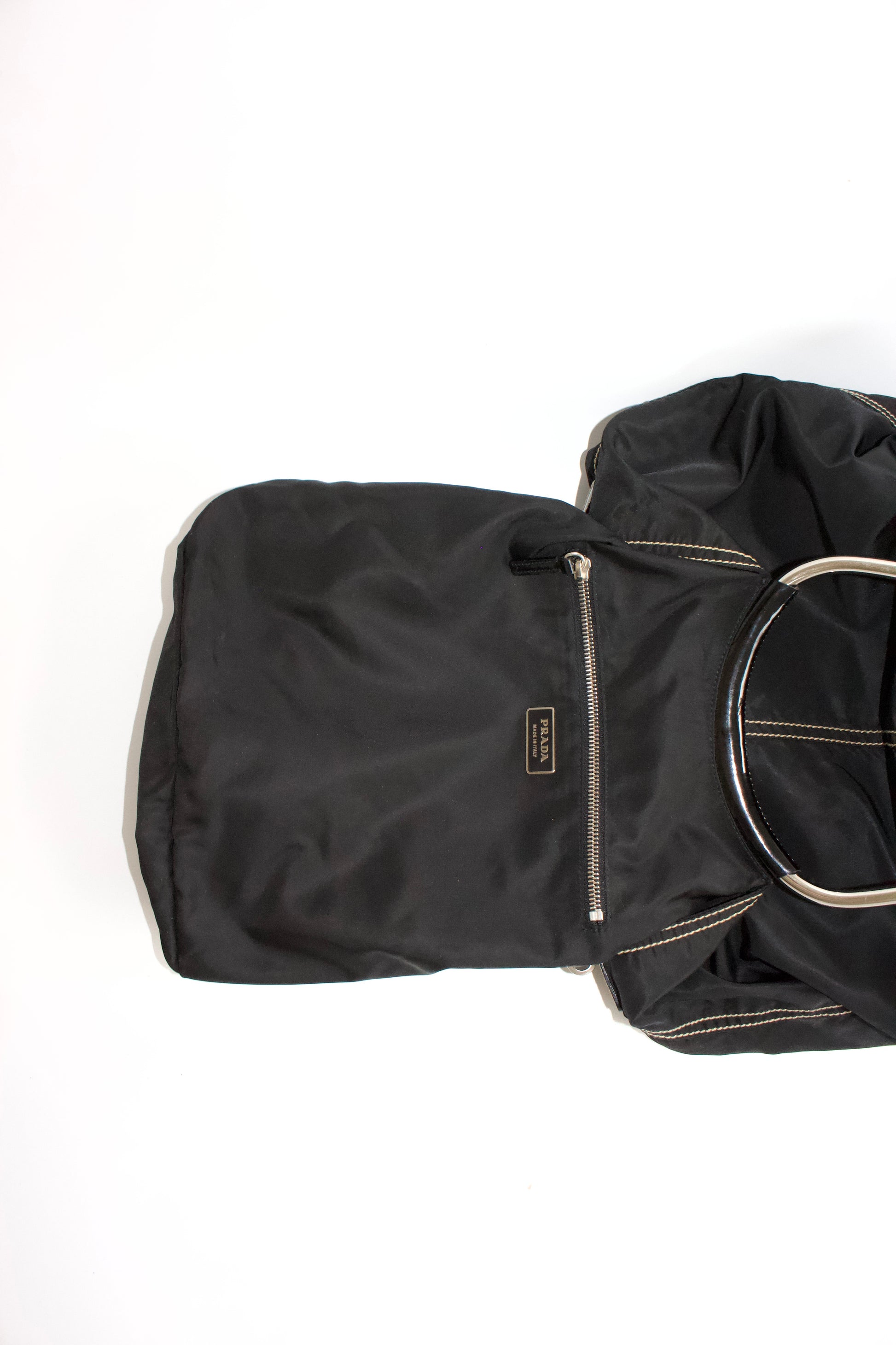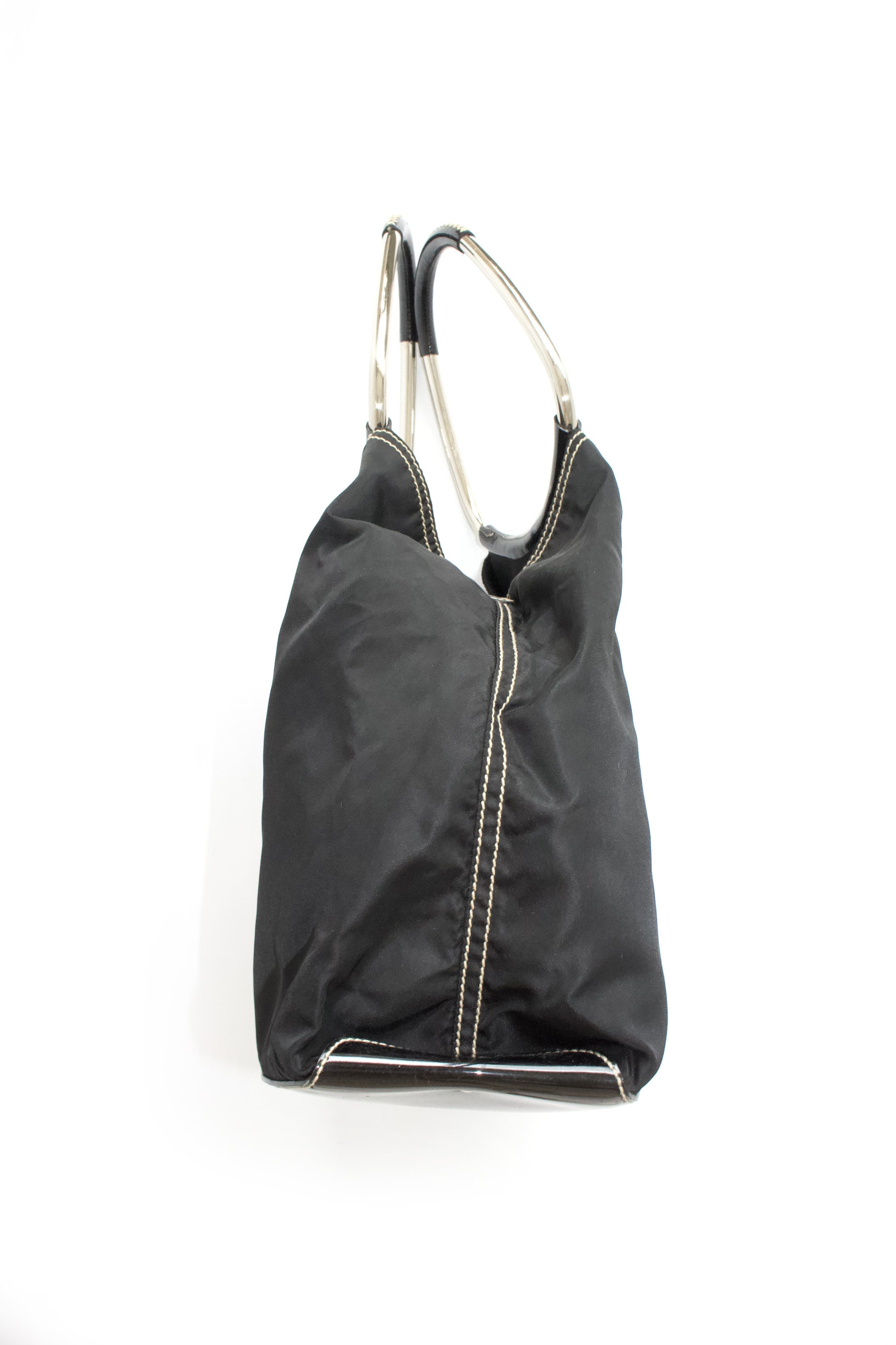 Prada SS 2003 black nylon shoulder bag with metal handle