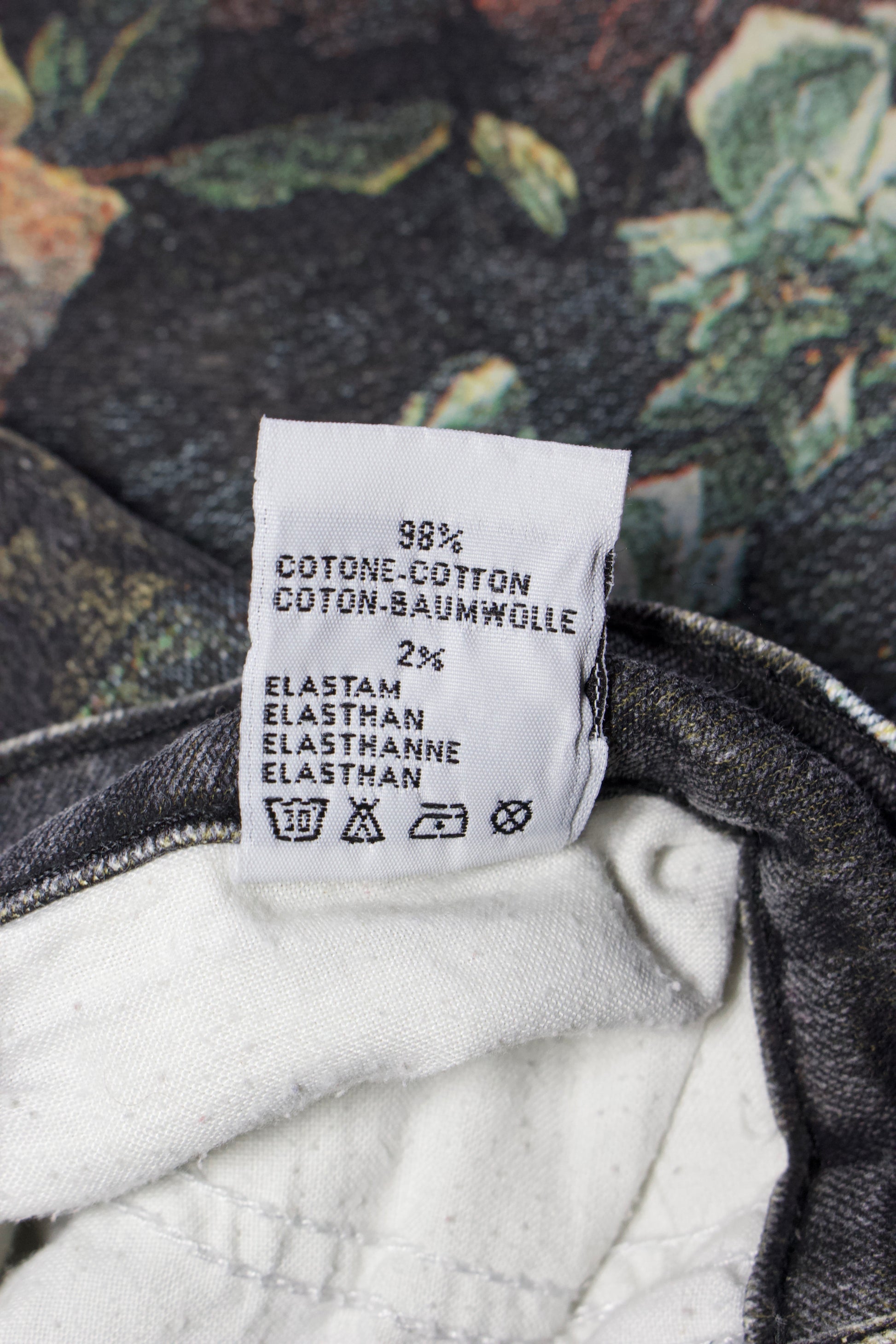 Roberto Cavalli FW 1994 black floral 'Renaissance' jeans