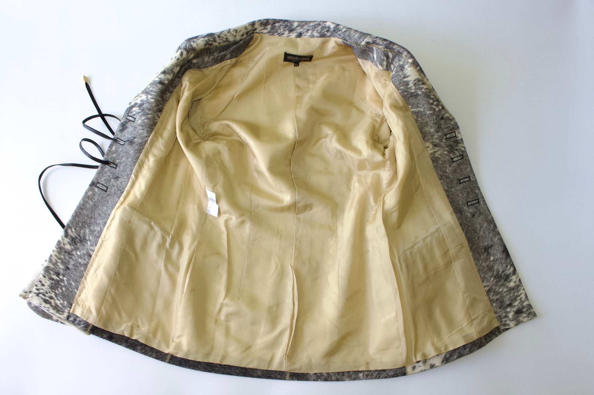Roberto Cavalli FW 1999 wool and leather jacket, Roberto Cavalli vintage jacket, Cavalli 1990s runway jacket, Roberto Cavalli wool leather blazer, designer 90s Cavalli jacket, Roberto Cavalli fall winter 1999 collection, Cavalli mixed material jacket, Roberto Cavalli statement outerwear, Cavalli vintage wool leather coat, luxury Italian designer jacket, Roberto Cavalli archive fashion, Roberto Cavalli rare 1999 jacket, Cavalli collector’s piece, Roberto Cavalli tailored wool leather jacket, Cavalli 90s fashion runway outerwear.
